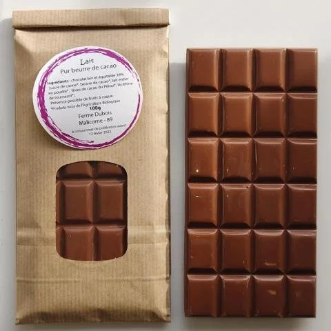 fèves de cacao du Pérou bio, sucre de canne bio, beurre de cacao bio, lécithine de tournesol bio. gingembre bio, sucre de canne bio.